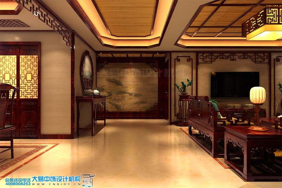 客廳中式設計古樸、大氣,讓空間看起來清亮、寬敞