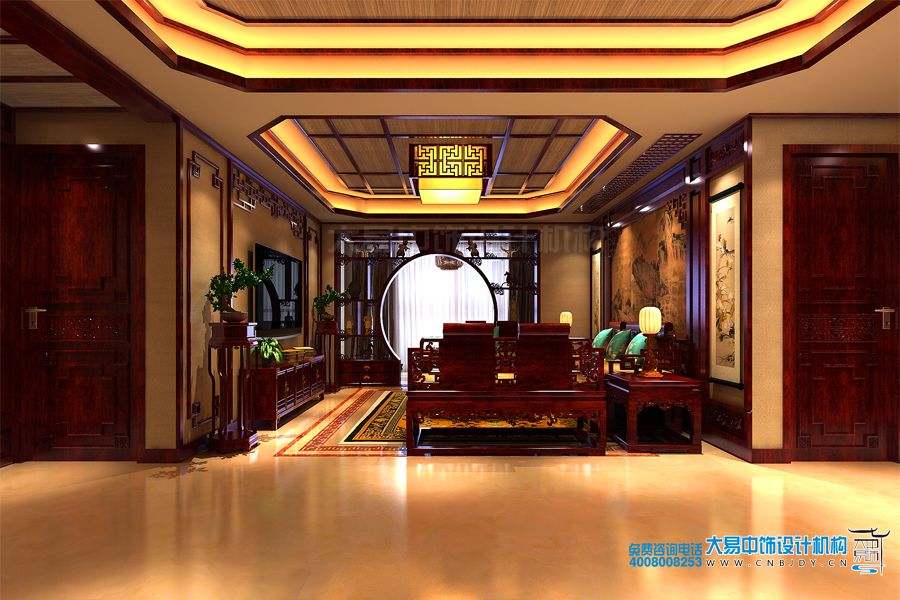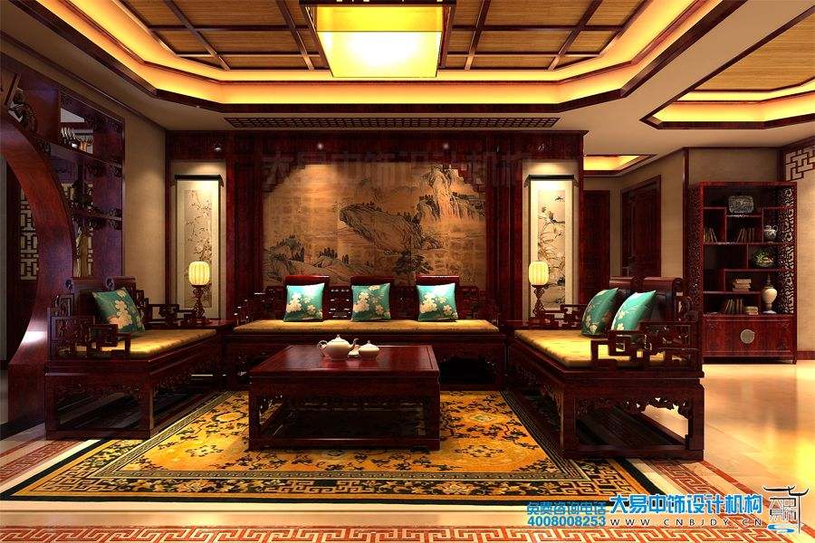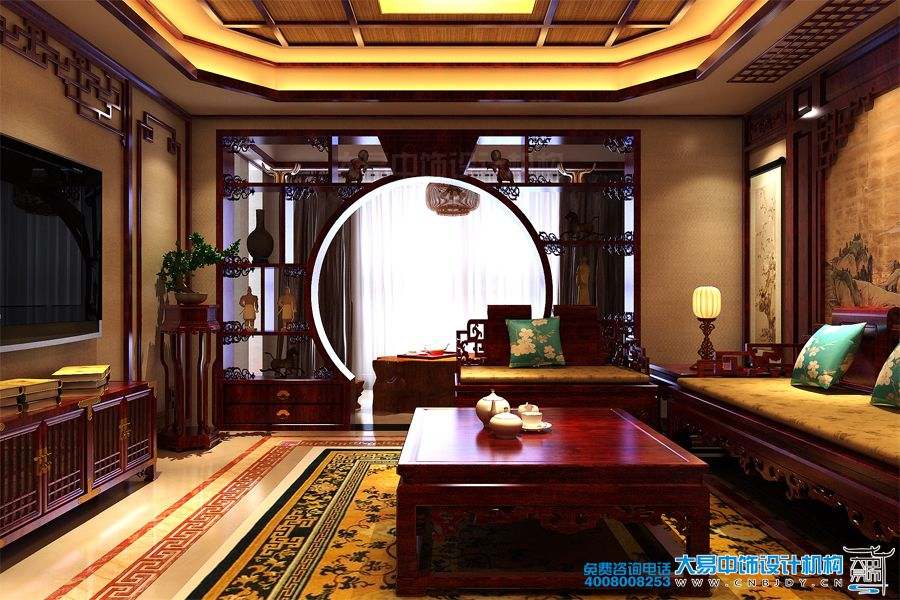 客廳設計雖然擺放了大量的中式家具,可溫暖的色調與創意的設計成了柔化室內空間生硬的線條,賦予居室一種典雅舒適的格調