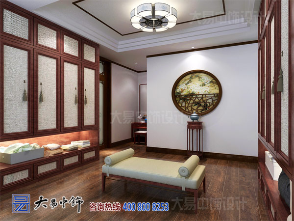不同于歐式的落地柜與大鏡面的直接奔放,中式衣帽間的設計更為雅致含蓄。