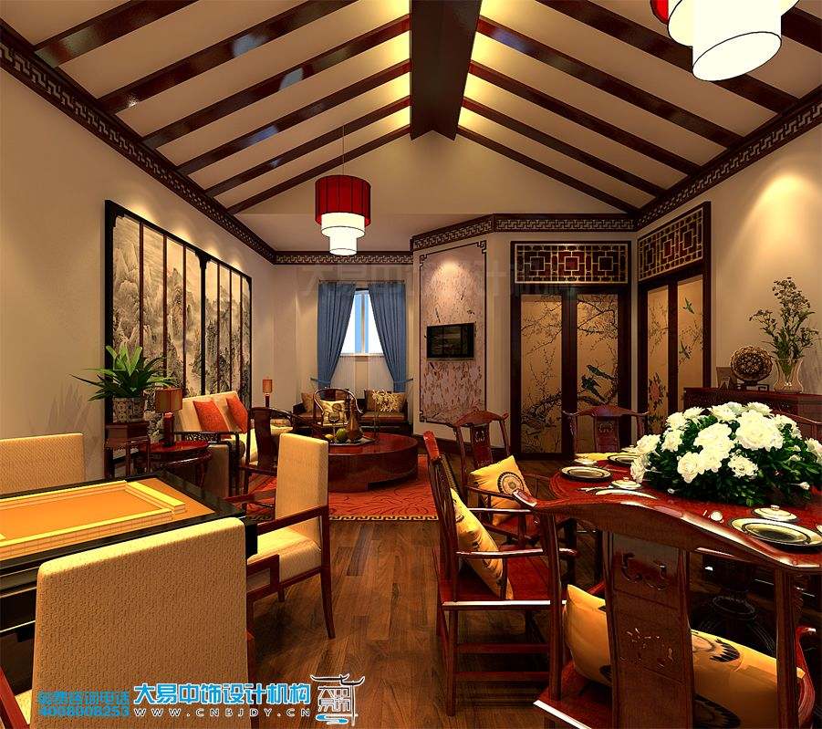 案例賞析:簡(jiǎn)約中式風(fēng)格的餐飲會(huì)所裝修效果圖,創(chuàng)造了屬于視覺(jué)上的那種寧?kù)o與清雅的感覺(jué),更增加了餐飲空間的溫馨基調(diào)與藝術(shù)感染力。在結(jié)合了古典建筑物的設(shè)計(jì)構(gòu)造與藝術(shù)品搭配上,大易中飾設(shè)計(jì)師更是精挑細(xì)選、力求達(dá)到與整體風(fēng)格統(tǒng)一的和諧感。比如,簡(jiǎn)練的木頂隔斷、大量的留白手法、厚重實(shí)用的中式家具、唯美清幽的古典燈飾、墨香儒韻的墻體掛畫(huà)等等,不管是從形態(tài)上,還是色彩上都能凸顯其優(yōu)雅高貴之韻。