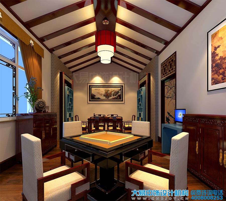 麻將室正面裝飾雖然時(shí)尚簡(jiǎn)約,也夾雜著復(fù)古的氣息