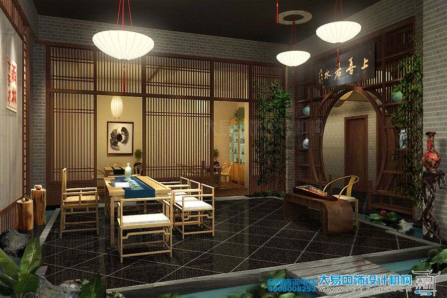 案例分析:北京古樹坊茶樓中式裝修效果圖,仿佛給人帶來一種優雅而恬淡的田園般的愜意與輕松的生活情調。特別是茶樓內部整潔而有序、工藝精湛的建筑造型,和軟裝配飾,都凸顯出茶樓自身的幽靜與唯美。步入茶樓空間的一霎那,復古的空間氛圍,細膩的書畫、茶具的布置,仿佛讓我們親身置于悠揚而又古典人文殿堂的奇妙世界里,感受到一縷茶韻的沁香。