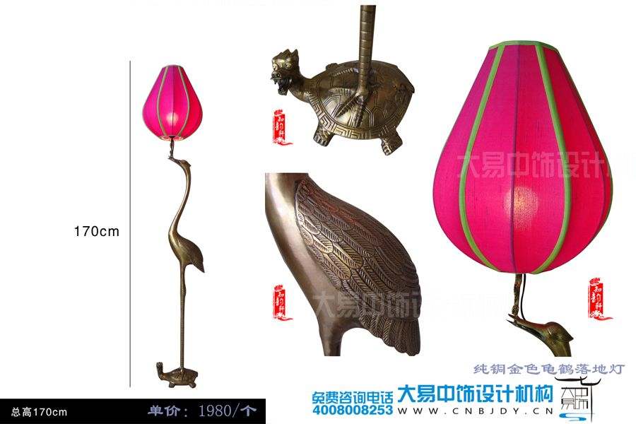 銅金色龜鶴落地燈
