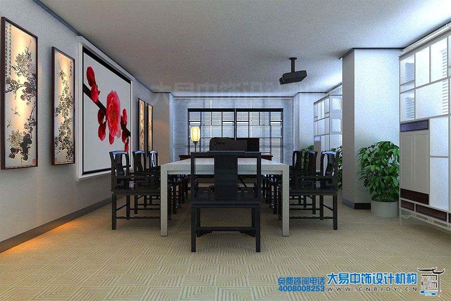 端莊而清雅的會議家具,還有墻面墨香濃郁的字畫懸掛,彰顯出一股大氣古韻的文化美感