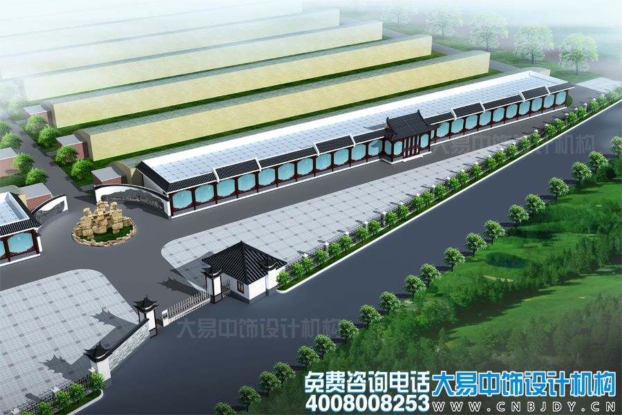 大門設(shè)計,采取了中式傳統(tǒng)建筑模式,突顯大氣、恢弘、莊雅的氛圍。