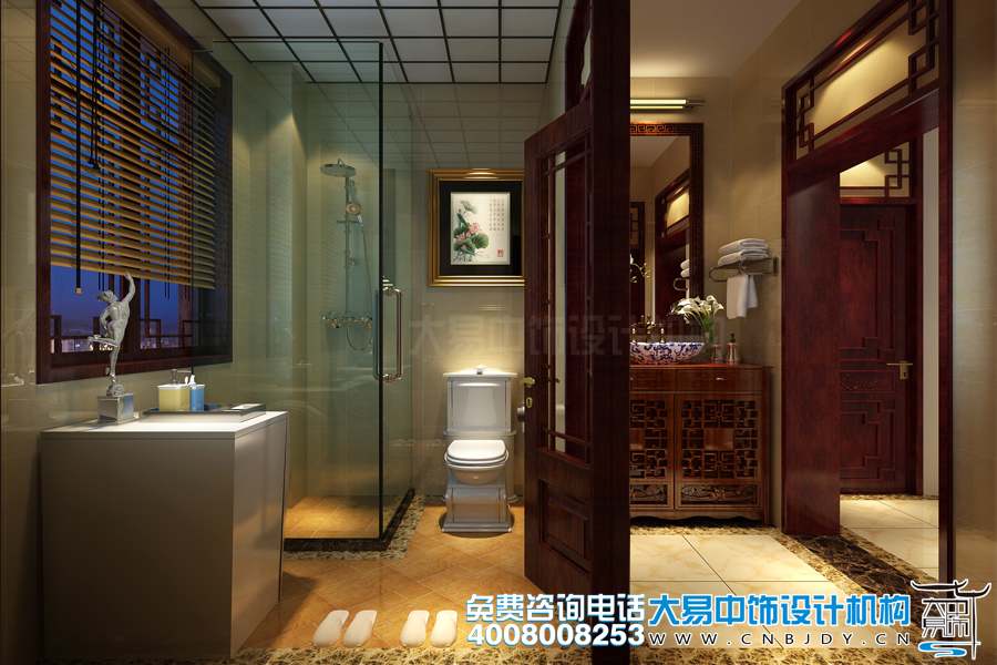 一樓衛(wèi)生間古樸、典雅、現(xiàn)代感十足