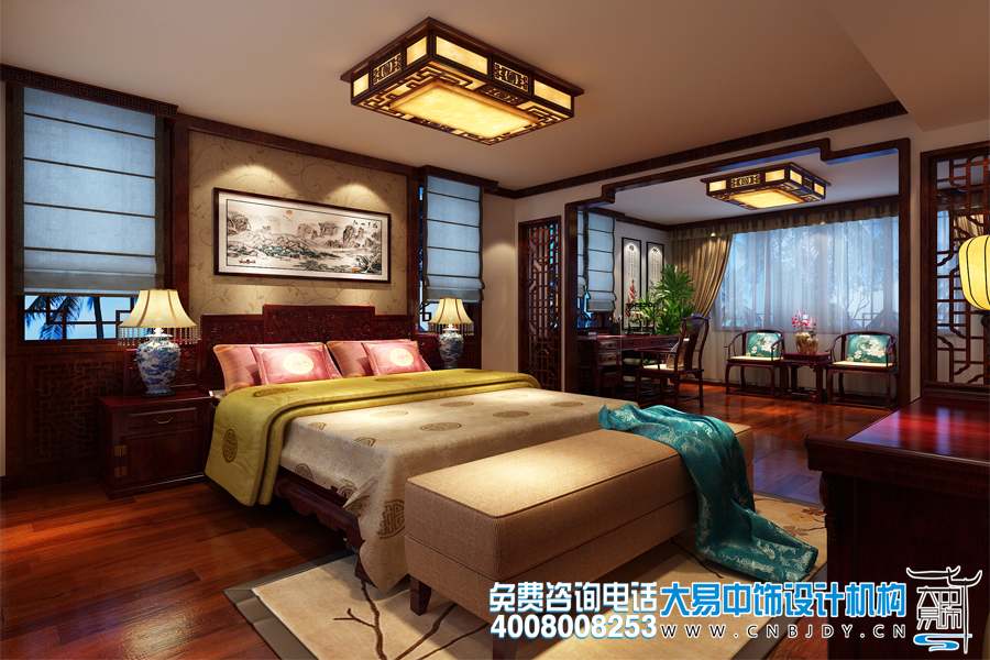 女兒房典雅奢華、一幅唯美的中式畫(huà)裝飾床頭,真乃國(guó)色天香之調(diào)