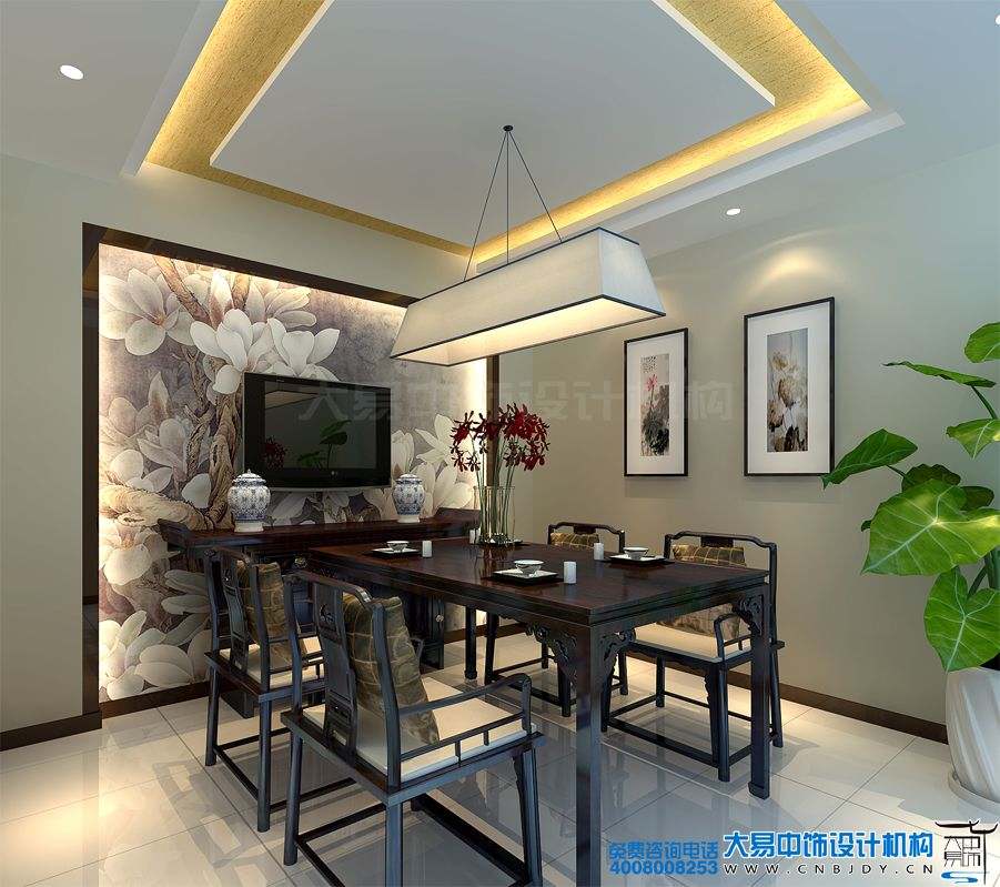 餐廳背景墻上的雕花圖案,以及木質(zhì)家具的擺放,四處都透露著中式裝修的特色