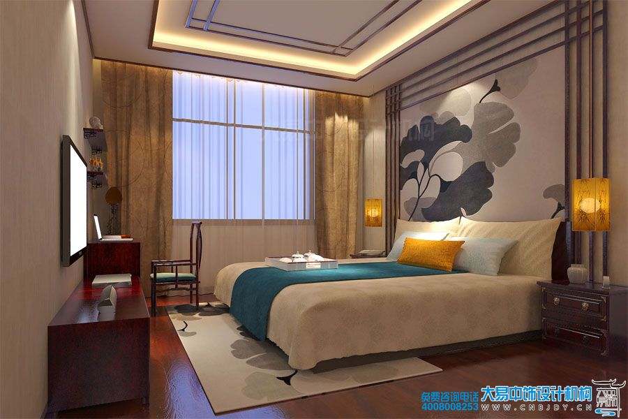 臥室裝修鑲嵌了水墨荷花圖,給整個(gè)空間增添了優(yōu)雅與古典風(fēng)情