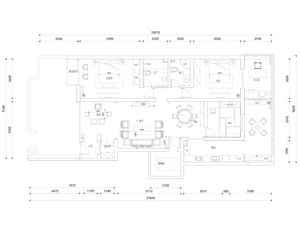 戶型為四居加前后庭院,整體戶型未做大的調(diào)整,僅通過(guò)局部修改便使空間更加完整合理。