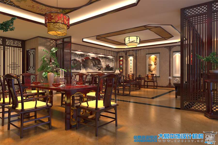 餐廳中式裝修散發著濃郁的中式風,也體現出清新簡潔的現代氣息
